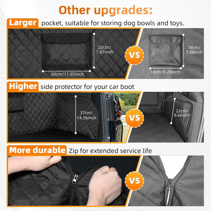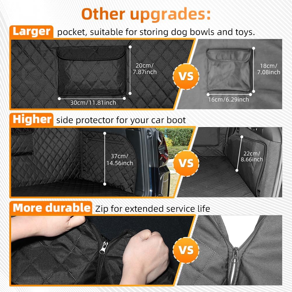 - 🐶BESTÄNDIGE UND NICHT GLEITENDE ENTWÜRFE: Hergestellt aus 600D Oxford-Gewebe, mit PP-Baumwolle gefüllt, Wasserdicht, reissfest und extrem robust, inklusive Ladekantenschutz und Seitenschutz. Autoschondecke vermeidet nicht nur effektiv Kratzer und Schmutz, sondern bietet auch den besten Stossstangenschutz.