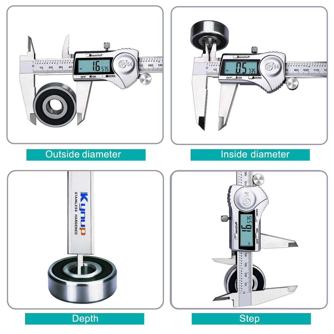 - 【Präzise & Genau】Kynup digitale Messschieber von Kynup hat einen messbereich von 0 - 8'' / 0 - 200 mm; Genauigkeit bis ±0,001"/0,02mm Und Auflösung bis 0,0005"/0,01mm. Perfektes und genaues Messwerkzeug für denMessschieber für Haushalt oder