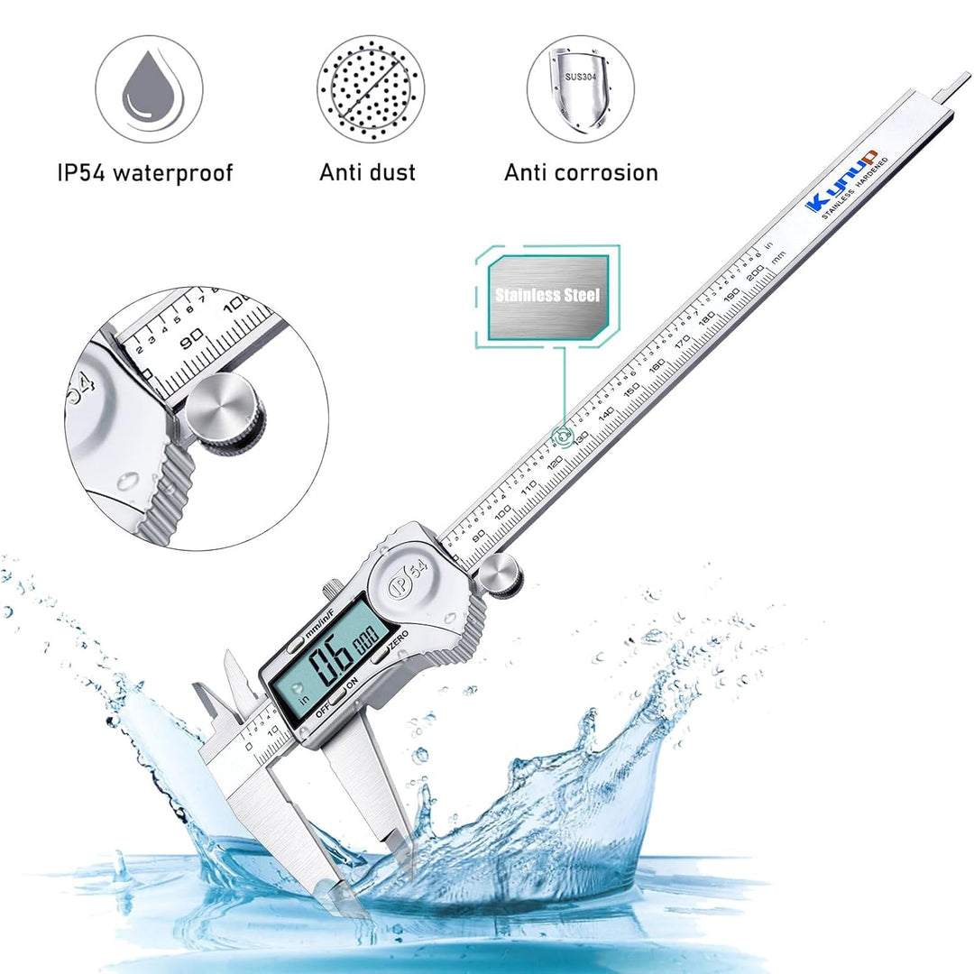 - 【Hohe Qualität mit IP54 wasserdicht】 Messschieber mit fein poliertem Edelstahlrahmen und gerändelter Daumenrolle, die ein reibungsloses Gleiten, Robustheit und Haltbarkeit, lange Lebensdauer, einfache Lagerung und Transport gewährleisten. Die