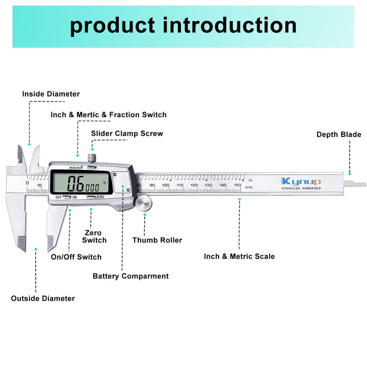 - 【3 Einheiten Umwandlung】Kynup digitaler messschieber können frei zwischen Zentimeter, Millimetern und Brüchen umgeschaltet werden. Die Einheitswechselfunktion des messschieber kann Ihre unterschiedlichen Gewohnheiten und Bedürfnisse erfüllen. Die