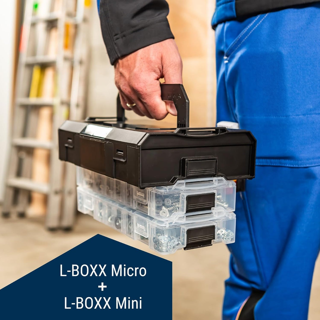 - Stapel- und verklickbar: Dank des innovativen Klickmechanismus ist die L-BOXX Micro Sortierkasten problemlos mit anderen BOXXen wie der XL-BOXX und L-BOXX Mini kombinierb