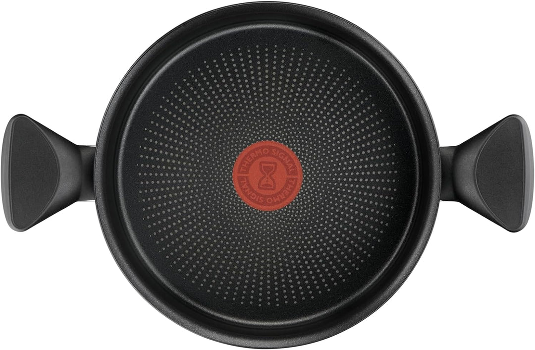 - Wärmeanzeige: Die Thermosignal-Anzeige in der Mitte der Pfanne ändert die Farbe, wenn die richtige Temperatur erreicht ist, um mit dem Kochen zu beginnen, für Rezepte immer punktgenau gekocht
