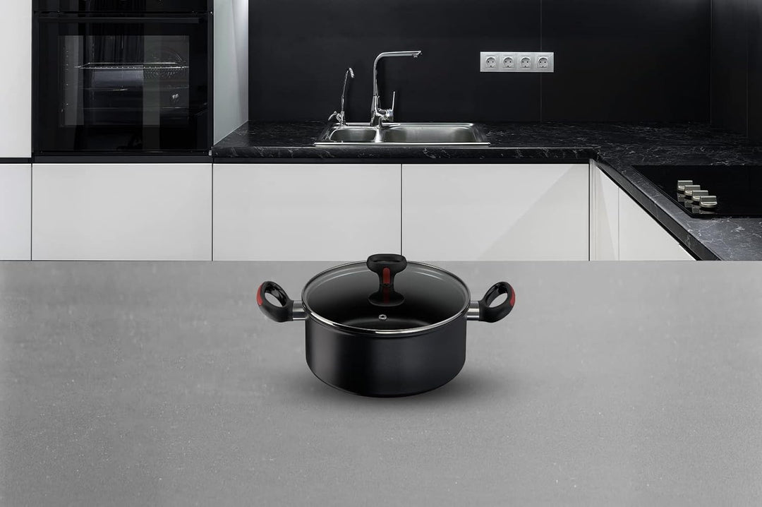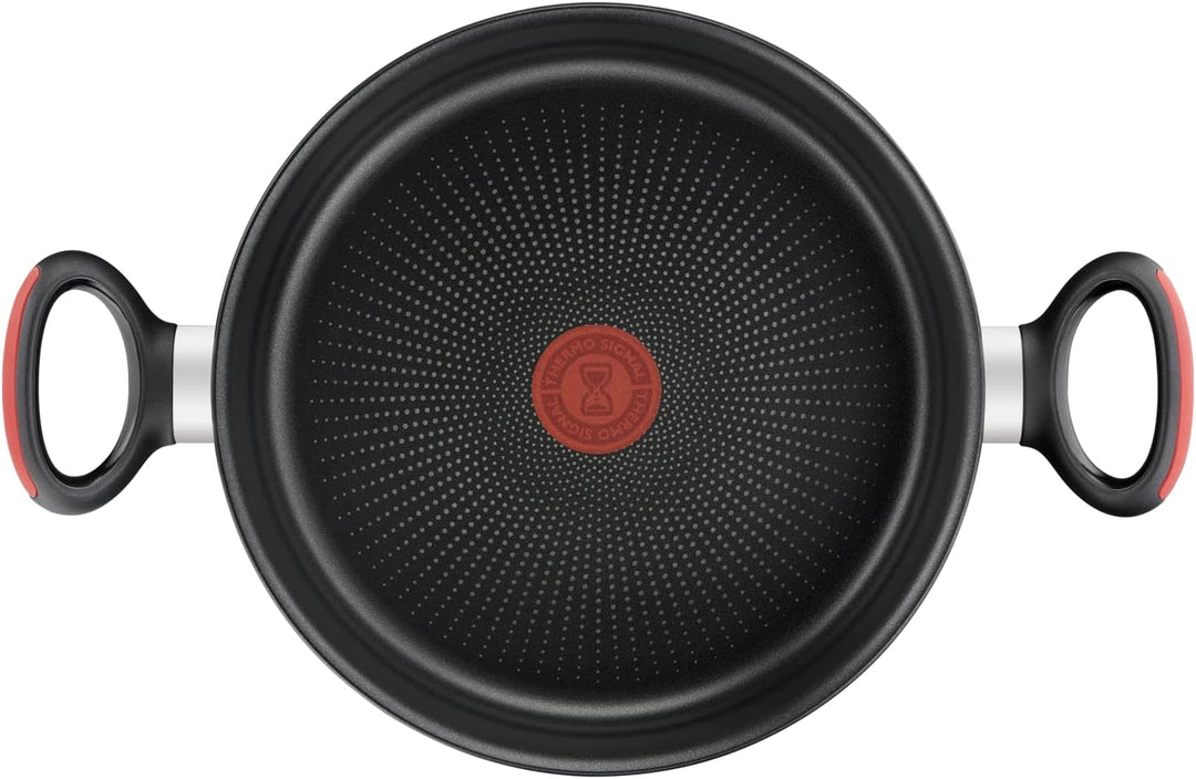 - Wärmeanzeige: Die Thermosignal-Anzeige in der Mitte der Pfanne ändert die Farbe, wenn die richtige Temperatur erreicht ist, um mit dem Kochen zu beginnen, für Rezepte immer punktgenau gekocht