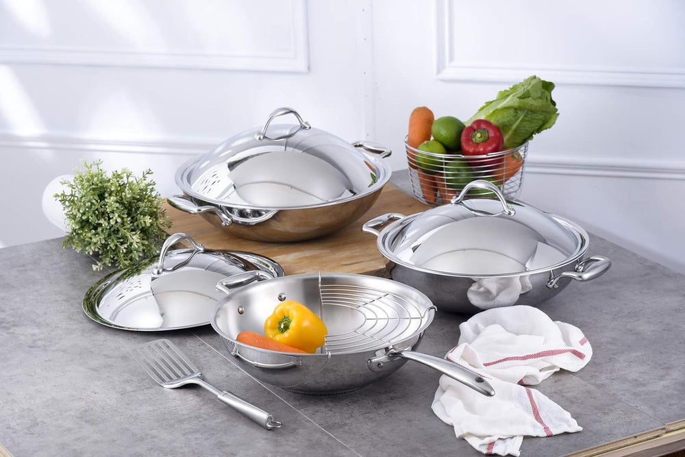 - WOK PFANNE: Lagostina Accademia Lagofusion Wok aus robustem Edelstahl mit langem Griff. Innen satiniert und aussen glänzend für einfaches säubern. 30 cm Durchmesser, 5 l Fassvermögen