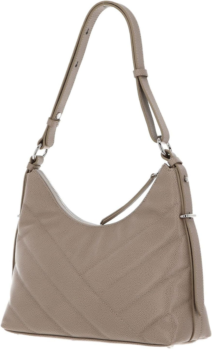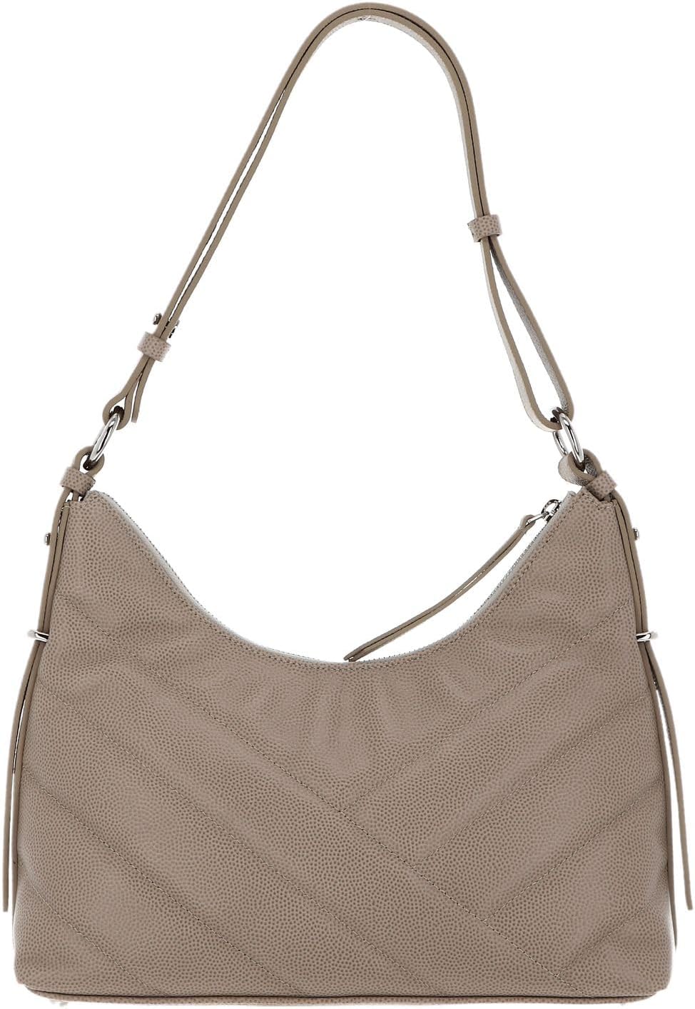 PRODUKTBESCHREIBUNGEN Diese Hobotasche ist aus genarbtem Rindsleder gefertigt. Es verfügt über eine einfache Innentasche sowie zwei Innentaschen auf jeder Seite, einen Reissverschluss und eine einfache Tasche. Diese Hobo Tasche wird über der Schulter getragen. Futter: 100% Textil Ausführung: mattes silberfarbenes Metall Masse: 30 x 24 x 10 cm