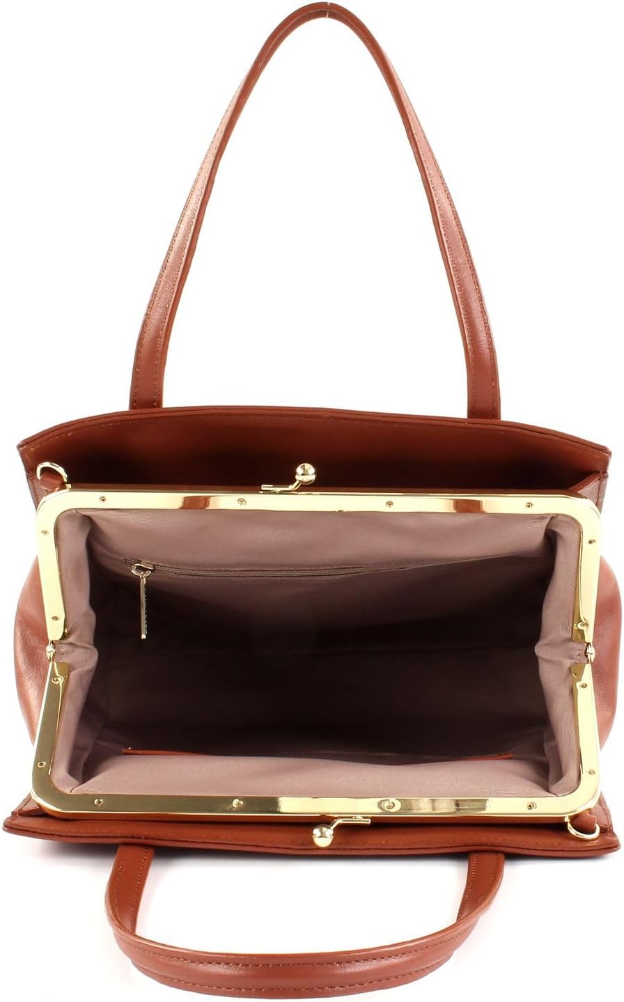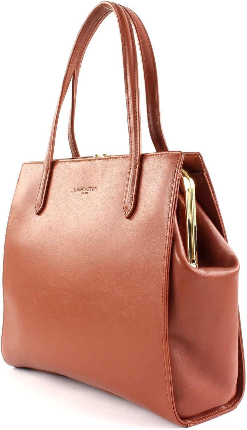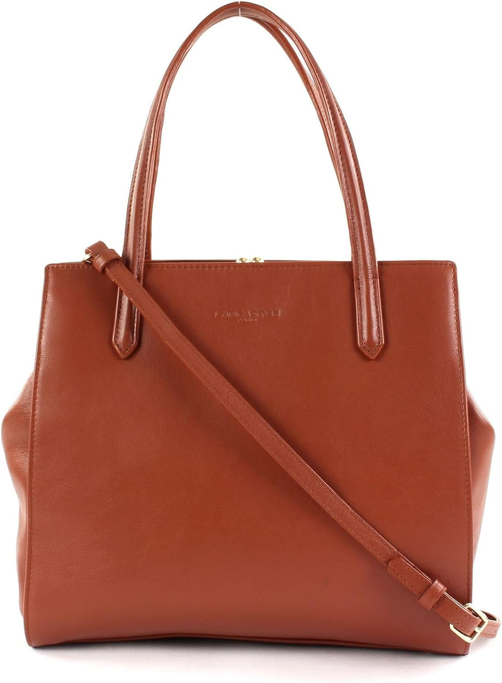 PRODUKTBESCHREIBUNGEN LANCASTER Handtasche mit antikem Charme Daten Handtasche: o Masse: Breite ca. 28 cm, Höhe ca. 24 cm, Tiefe ca. 13,5 cm o Gewicht: ca. 750 g o Farbe: Cognac (Braun) o 2 Henkel: ca. 38 cm o 1 Schulterriemen abnehmbar, verstellbar: ca. 105 cm - 125 cm o Material: 100% Rindsleder o Lieferumfang: LANCASTER Handtasche mit Etikett, Schulterriemen, Staubbeutel Ausstattung Handtasche: o Handtasche wird mit Bügelverschluss geschlossen o Im Hauptfach 1 Zipperfach und 1 Einschubfach o Auf der Oberseite 2 Einschubfächer o Mit Schutzfüsschen und verstärktem Boden ausgestattet o Ist standfest o Das LANCASTER Logo ist gut sichtbar eingearbeitet LANCASTER Nina Hand Bag M - Die Handtasche für noble Ladies Die Schönheit und Ausstrahlung der LANCASTER Nina Hand Bag lässt sich kaum mit Worten beschreiben. Die minimalistische Handtasche in antiker Optik haucht Ihrem Styling Eleganz ein und wird Sie zum Hingucker des Abends machen. Mit den zwei kleinen Henkeln oder dem zarten Schulterriemen können Sie die Abendtasche bei Ihrem nächsten Event stolz präsentieren. Die Rindsleder-Oberfläche und der besondere Bügelverschluss sind hierbei absolute Highlights und machen die LANCASTER Tasche so zu DEM Must-Have einer jeder modebwussten Lady.