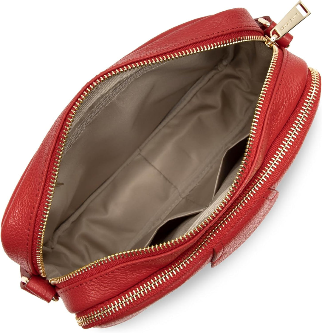 PRODUKTBESCHREIBUNGEN Aussentasche mit Reissverschluss, Innentasche mit Reissverschluss, einfache Innentasche, Telefonaufbewahrung Futter: 100% Textil Finish: Metall, goldfarben, glänzend. Masse: 24 x 17 x 7 cm