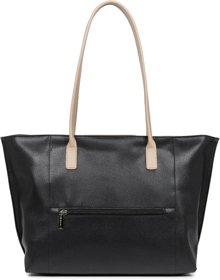 PRODUKTBESCHREIBUNGEN Reissverschlussfach auf der Rückseite, Innentasche mit Reissverschluss Polyvinylchlorid gefüllt mit Rindsleder, glattes Finish Material: 100 % Textil Verschluss: Reissverschluss Oberfläche: glänzendes silberfarbenes Metall Masse: 33 x 15 x 27 cm Mehr