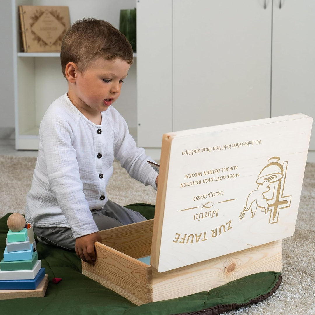 - Individuell gravierte Geschenkbox zur Taufe - so behalten Täuflinge und auch Eltern die Aufnahme in die religiöse Gemeinschaft für immer im Gedächtnis