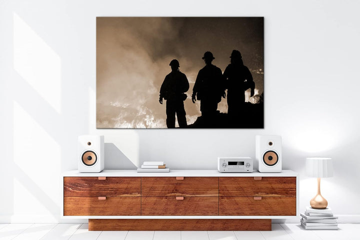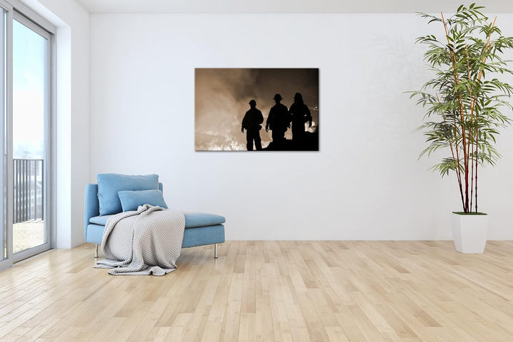 deyoli Lauffeuer Feuerwehr im Einsatz Format: 100x70 Effekt: Sepia als Leinwandbild, Motiv fertig ge