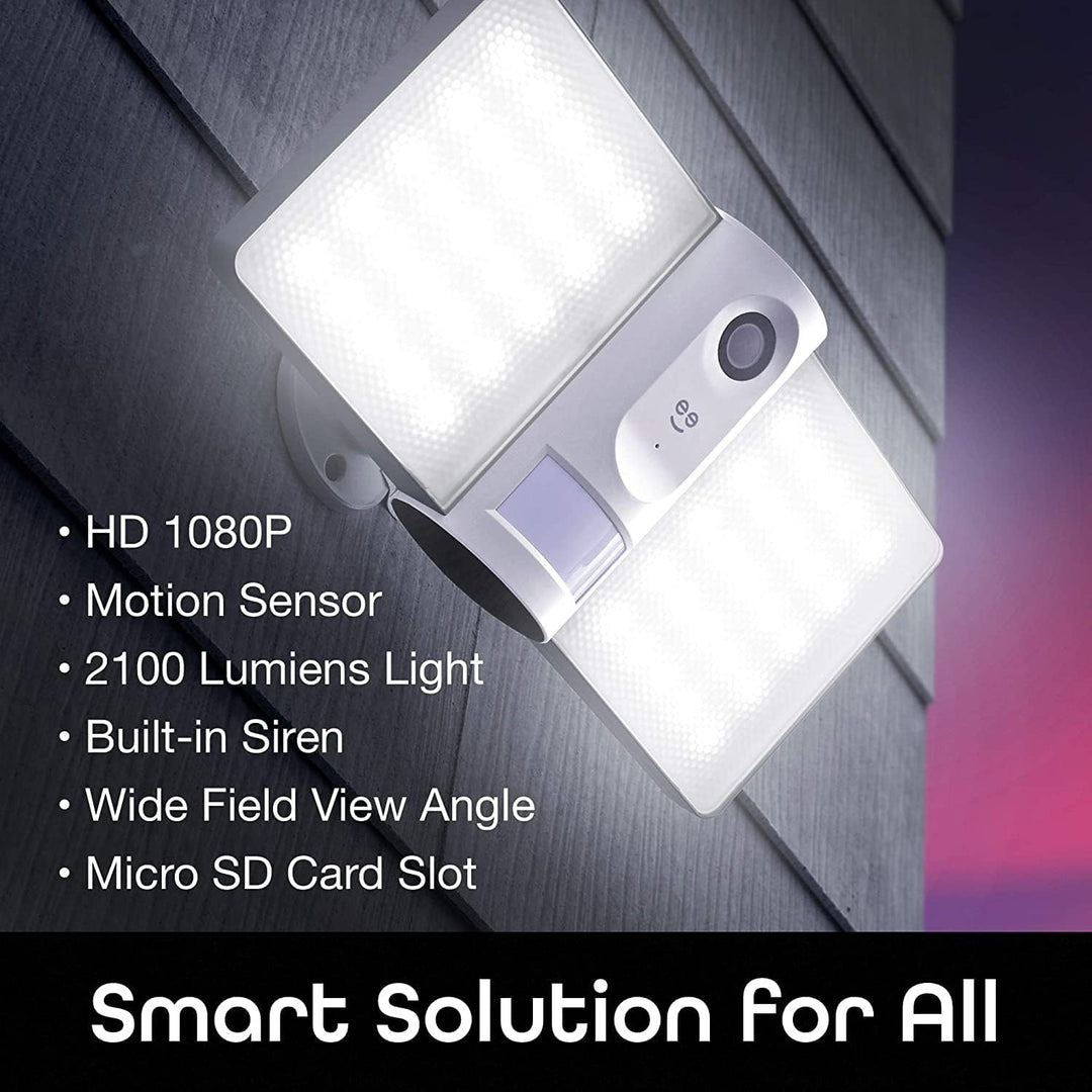 - 【Bewegungsalarme und Scheinwerfersirene】: Sie können Eindringlinge mit dem ultrahellen, bewegungsaktivierten Scheinwerfer und dem Sirenenalarm mit voller Lautstärke abschrecken. Die Lichter können auch auf einen Tageszeitplaner programmiert