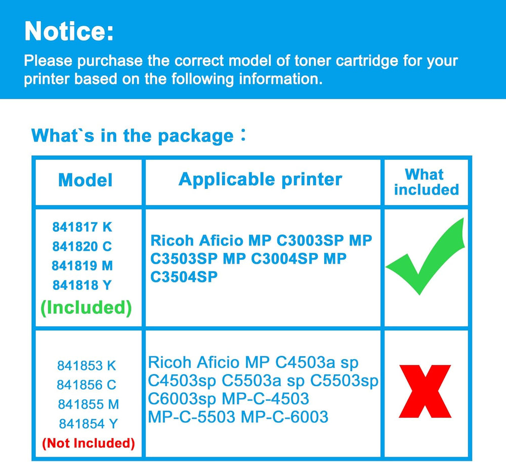 • ✅【Kompatibler Drucker】 Kompatibel für: Ricoh Aficio MP C3003SP MP C3503SP MP C3004SP MP C3504SP