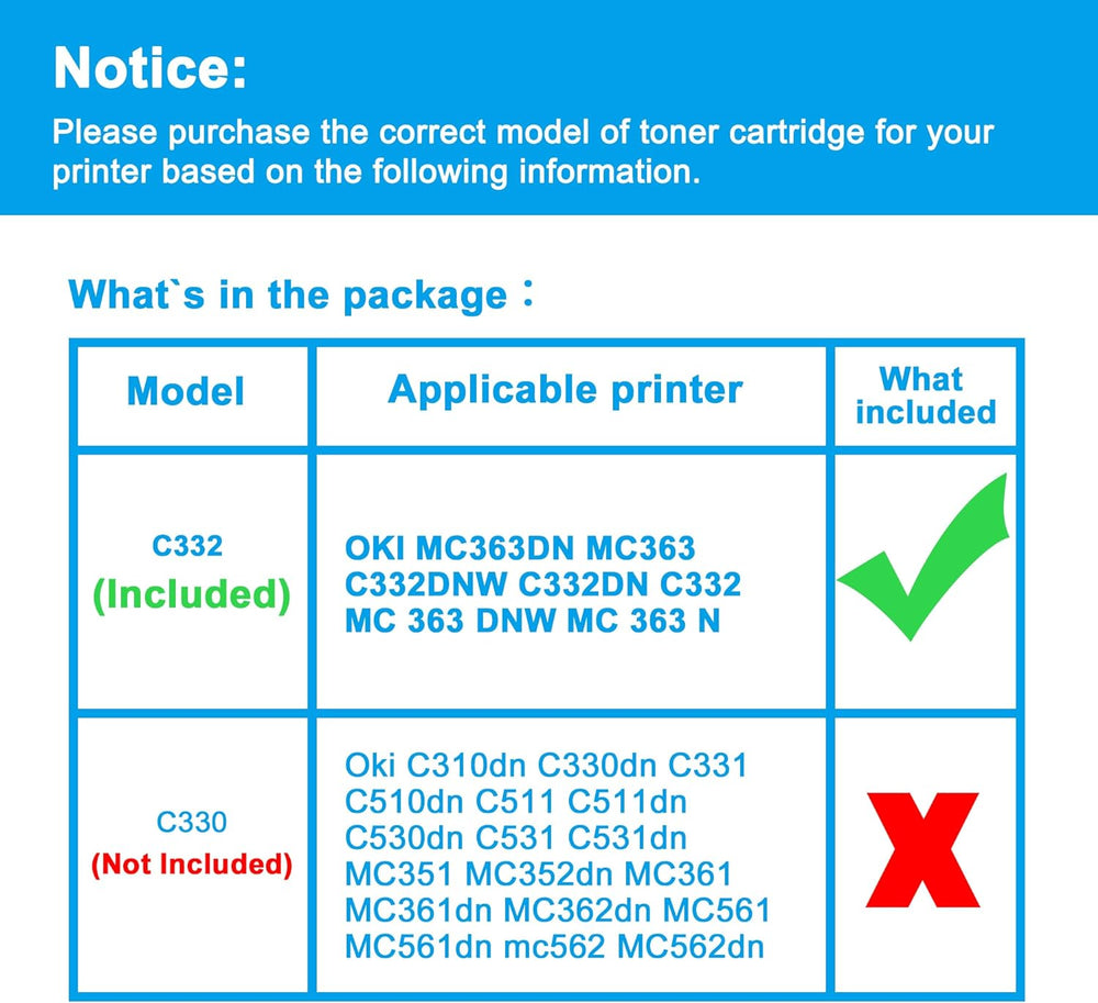 - ✅【Kompatibler Drucker】 Kompatibel für OKI MC363DN MC363 C332DNW C332DN C332 MC 363 DNW MC 363 N