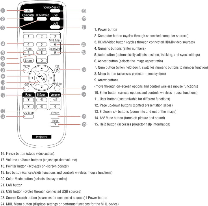 - Energiesparendes, komfortables Knopfdesign für grossartige Benutzererfahrung, feine elektronische Komponenten und eine strenge Qualitätskontrolle sorgen für eine grössere Reichweite und sind einfach für die Steuerung eines Deckenprojektors