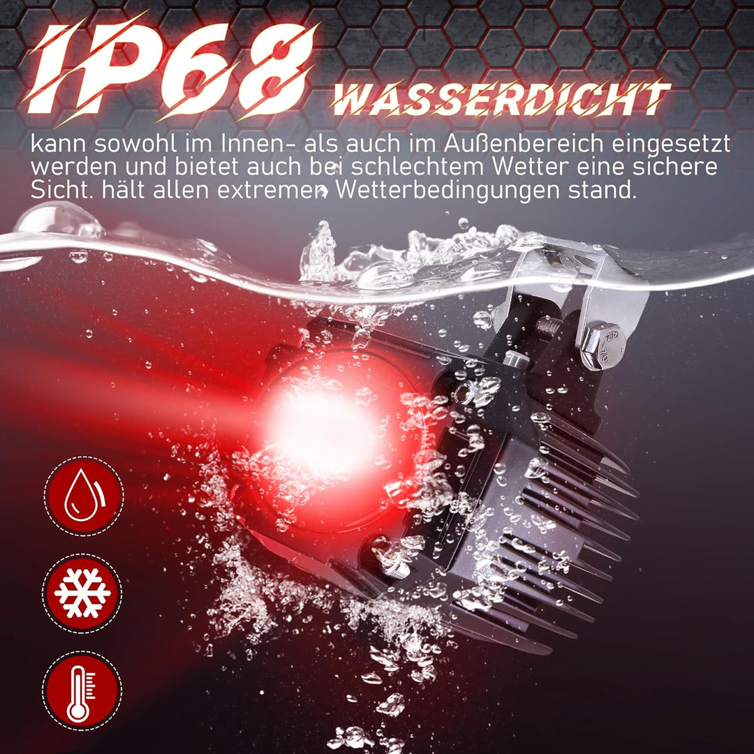 - WASSERDICHT IP68 - Die hohe Wasserdichtigkeit ermöglicht den Einsatz im Innen- und Aussenbereich und bietet auch bei schlechtem Wetter eine sichere Sicht.
