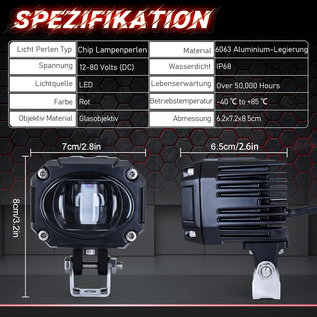 - INSTALLATION UND ANWENDUNG - Die doppelte Schraubbefestigung sorgt dafür, dass Ihre Leuchte sicher befestigt ist. Sie können den Montagewinkel der Leuchte frei einstellen.10W DC10-80V bietet effiziente Beleuchtung und verbessert die Sicherheit.