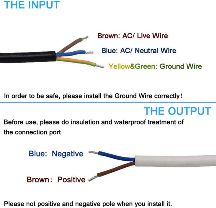 • HOHE QUALITÄT MATERIAL: Gehäuse aus Aluminiummaterial, vollständig geschlossene Struktur, wasserdichte Schutzart IP67. Eine schwarze AC-Eingangsleitung an einem Ende und zwei weisse DC-Ausgangsleitungen am anderen Ende.(150 W maximale Leistung an