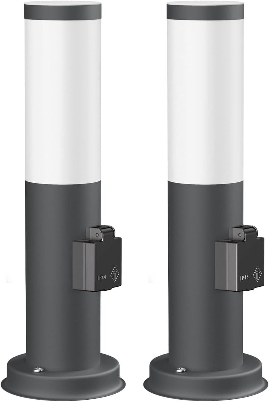 - [Schutzart IP44] - Die Pollerleuchte PORU mit Steckdose ist spritzwassergeschützt und somit ideal für den Einsatz im Freien geeignet. Die Anschlussmuffe ist in der Säule der Sockelleuchte versenkbar und ermöglicht somit eine einfache und schnelle