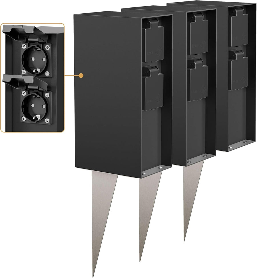 • Lieferumfang: 3 Sets bestehend aus jeweils: Garten-Steckdosen-Säule, Erdspiess, Schrauben, Dübel