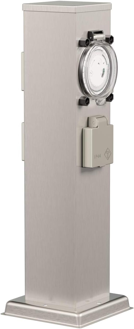 - [Kompakte Bauform] - Dank der kompakten Bauform (125 x 380 x 125 mm) lässt sich die Steckdosen-Säule problemlos auf dem Rasen oder der Terrasse befestigen. Das klassische Design aus hochwertigem Edelstahl fügt sich unauffällig in Ihren Aussenbereich