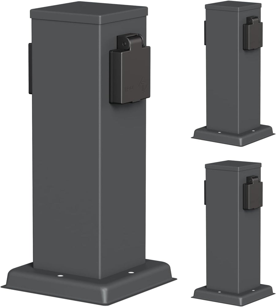 - Lieferumfang: 3 Sets bestehend aus jeweils: Garten-Steckdosen-Säule, Schrauben, Dübel
