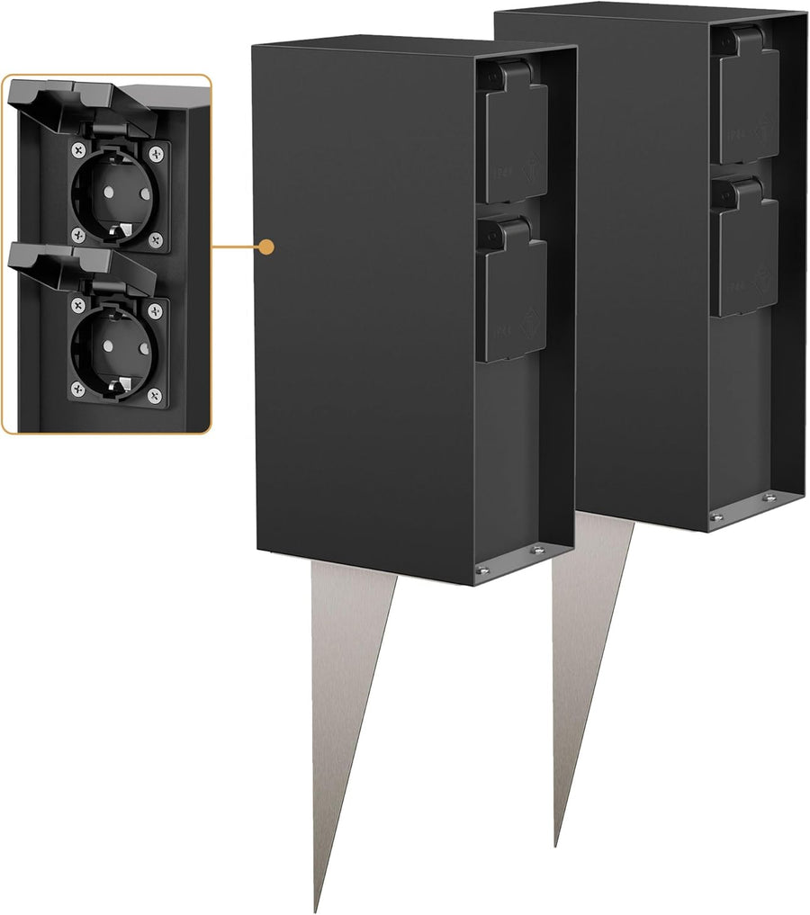 • Lieferumfang: 2 Sets bestehend aus jeweils: Garten-Steckdosen-Säule, Erdspiess, Schrauben, Dübel