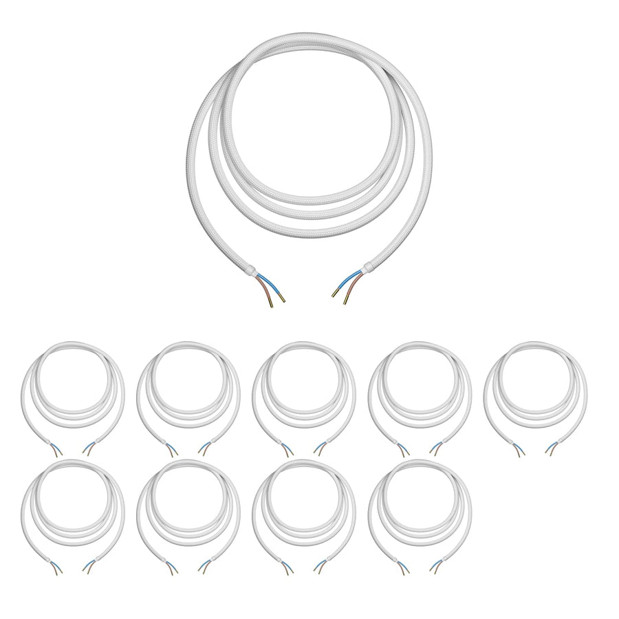 ledscom.de Stoffkabel, 3m, weiss, 2 x 0,75 mm², H03VV-F Textilummantelung, 10 Stk.