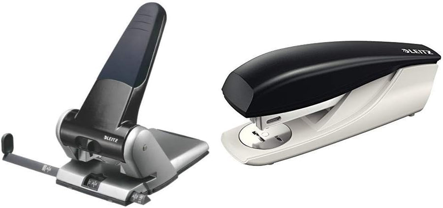 Leitz 5180 Extrastarker Registraturlocher (Langer Hebel Stanzleistung, 65 Blatt) schwarz/grau & Heft