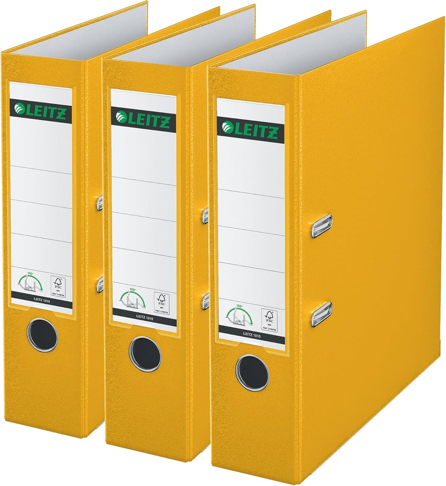 - Das Original: 3x Leitz Ordner mit abwischbarem Kunststoffeinband in Gelb, 80 mm Rückenbreite, für bis zu 600 Blatt (80 g/m²), Alltäglicher Gebrauch zu Hause, im Büro oder in der Schule