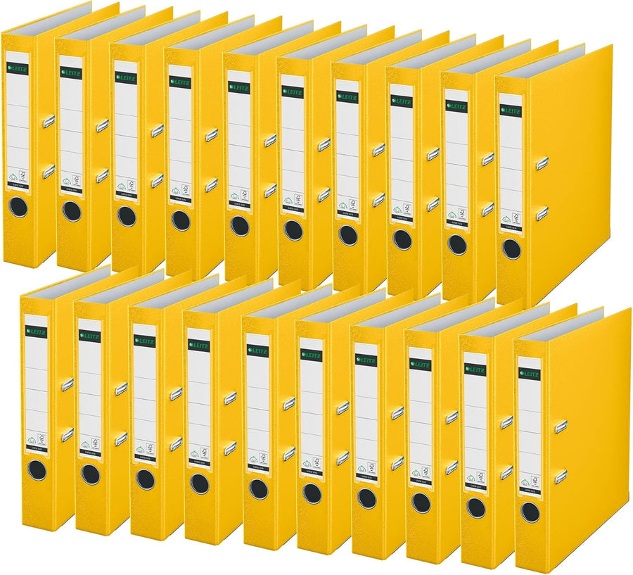 - Lieferumfang: 20 Leitz Qualitäts-Ordner, Gelb, Abmessungen 55x318x285 mm, A4, zwei fach Lochung
