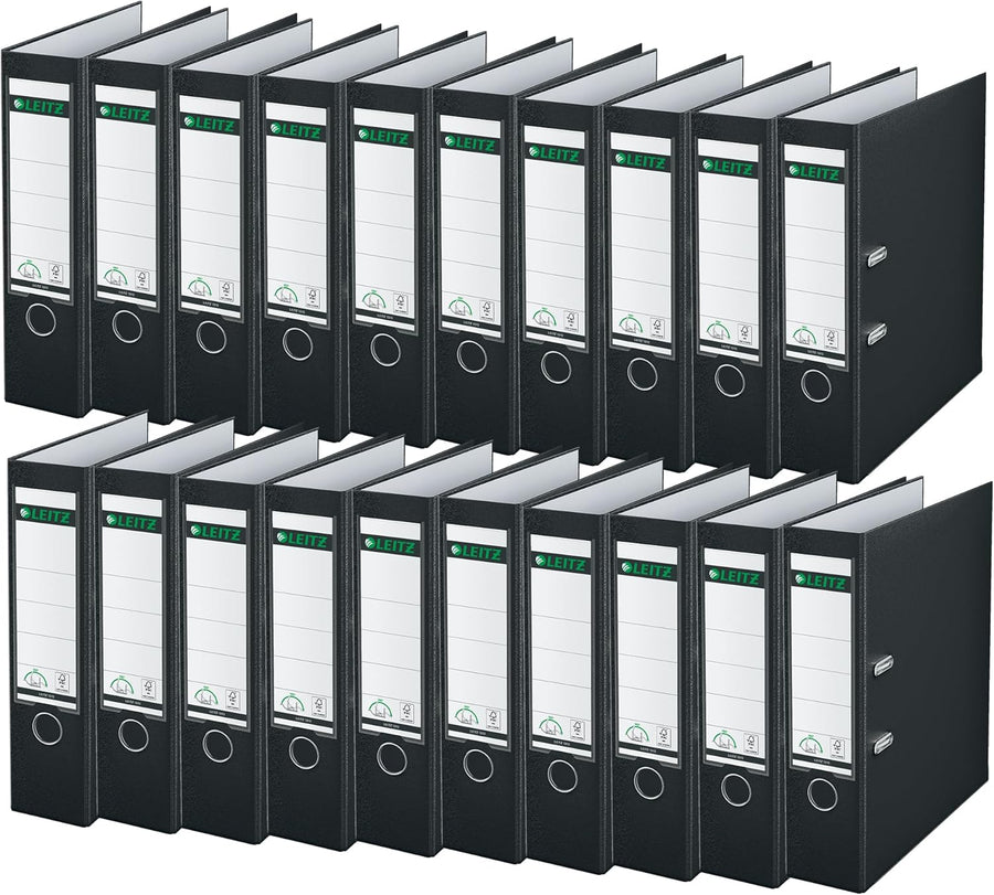 - 20x Qualitäts-Ordner in schwarz, Schmutz- und feuchtigkeitsabweisende PP-Folie aussen, 8 cm Rückenbreite, Zur Ablage von bis zu 600 (80 g/m²) Blatt, Zur häufigen Nutzung für Zuhause, in der Schule oder im Büro