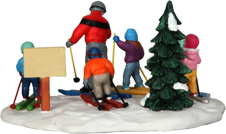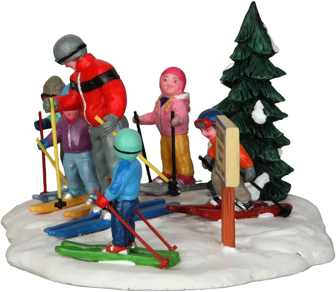 - Zu den Details gehören Skistöcke, Tanne und Schild "Ski Lessons"