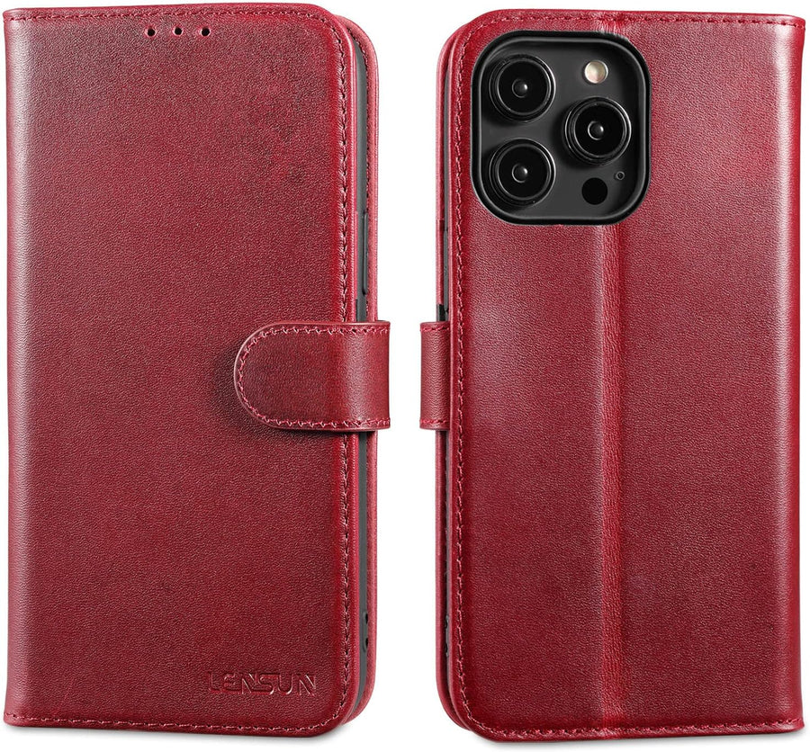 - MATERIAL: Die LENSUN iPhone 14 Pro Max Ledertasche ist verarbeitet aus hochwertigem und langlebigem Rindsleder. Das Leder wird angenehmer und weicher geworden durch den Gebrauch. Die Inner-Halterung ist aus weichem TPU-Material gefertigt, bietet maximal