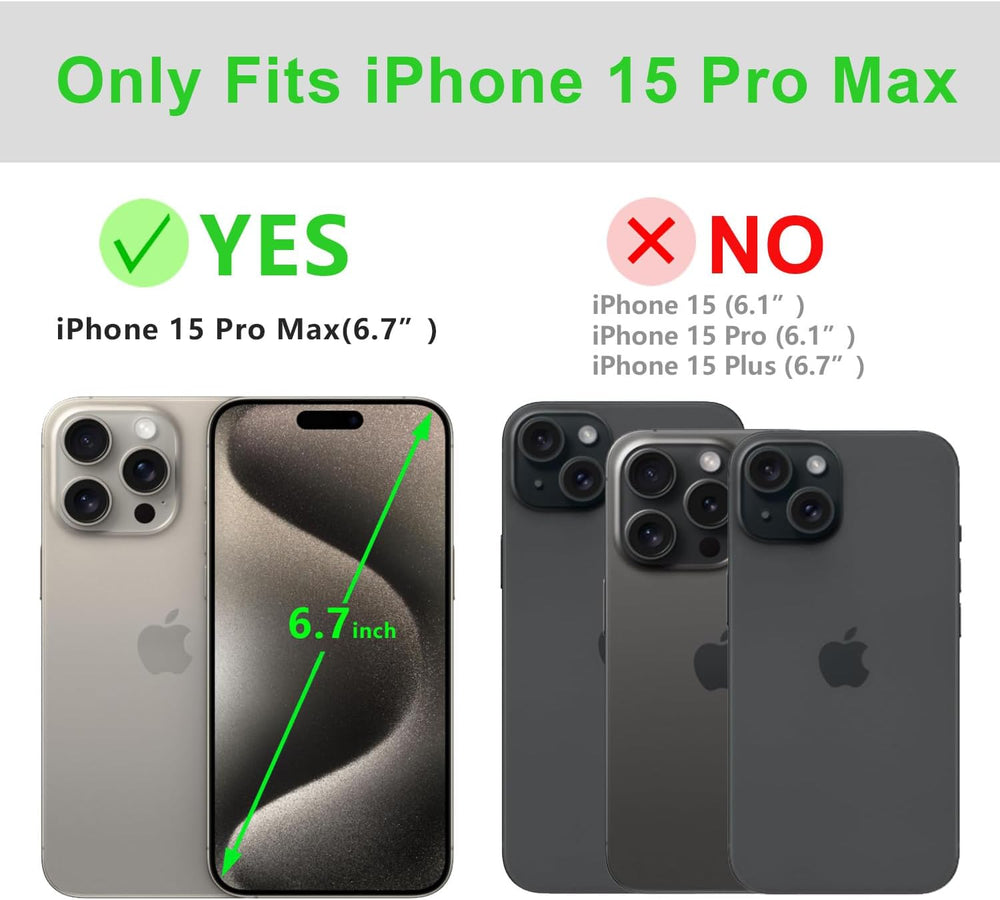 - KOMPATIBILITÄT: Diese LENSUN Klapphülle ist nur kompatibel mit iPhone 15 Pro Max 5G(6,7 Zoll). Alle Position für die Knöpfe und Anschlüsse des Handys sind exakt platziert. Dadurch sind sie alle gut und leichtgängig zu bedienen.