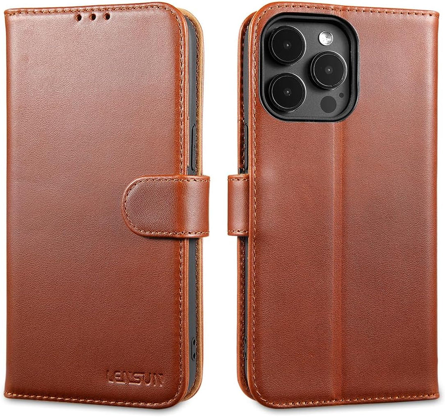 - MATERIAL: Die LENSUN iPhone 15 Pro Max Ledertasche ist verarbeitet aus hochwertigem und langlebigem Rindsleder. Das Leder wird angenehmer und weicher geworden durch den Gebrauch. Die Inner-Halterung ist aus weichem TPU-Material gefertigt, bietet maximal