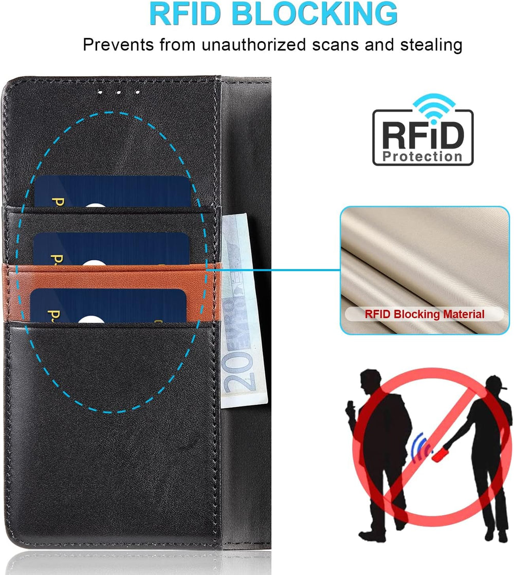- KARTENFACH DESIGN: Die Galaxy A14 Hülle ist gleichzeitig eine kleine Briftasche. Es hat drei Stecktaschen für notwendige Karten und ein Steckfach für Geldscheine oder Rechnungen. Die Hülle besitzt auch ein RFID blockierendes Innenfutter und schützt