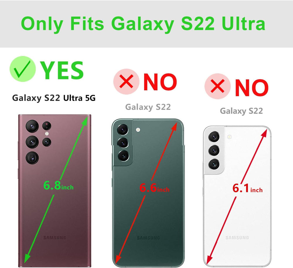 - KARTENFACH DESIGN: Die Galaxy S22 Ultra Hülle ist gleichzeitig eine kleine Briftasche. Es hat drei Stecktaschen für notwendige Karten und ein Steckfach für Geldscheine oder Rechnungen. Die Hülle besitzt auch ein RFID blockierendes Innenfutter und