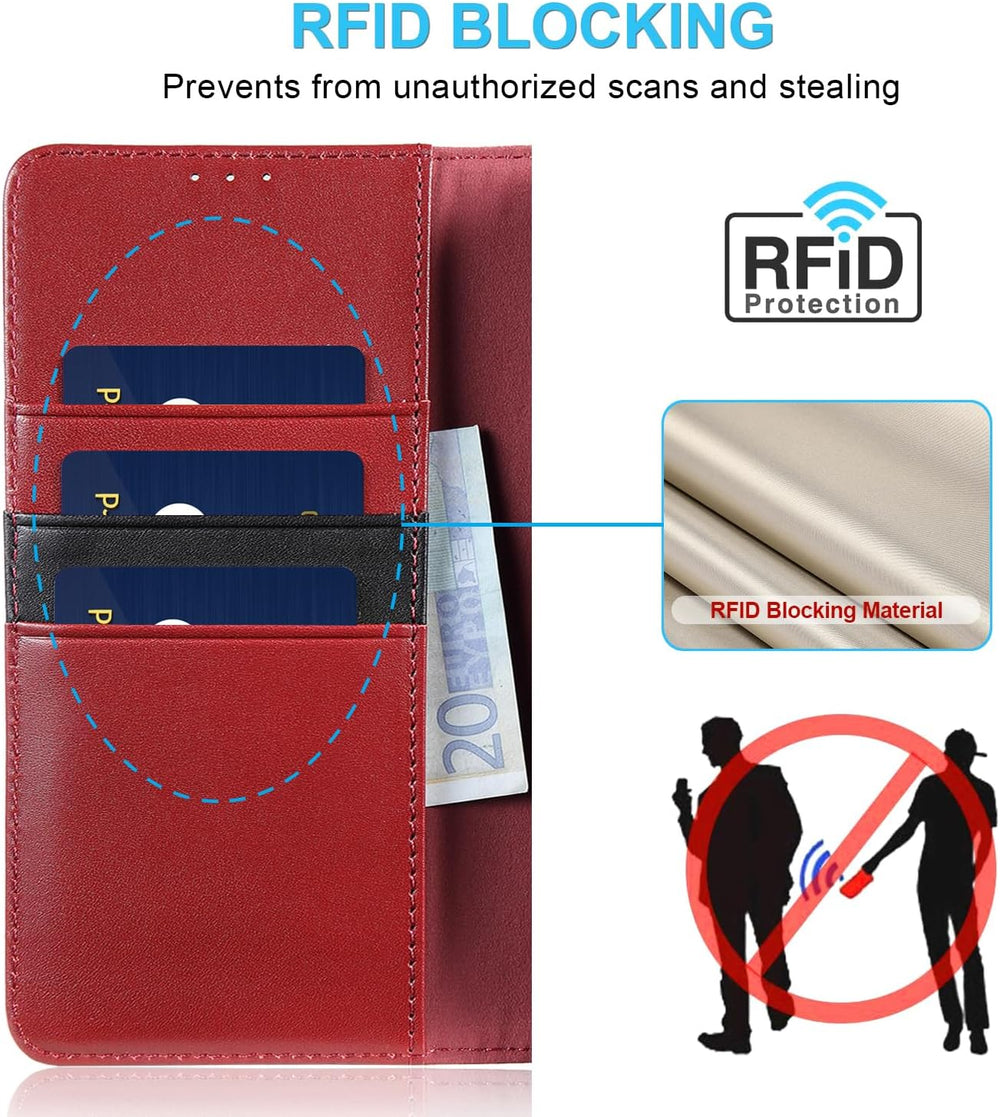 - KARTENFACH DESIGN: Die Galaxy A14 Hülle ist gleichzeitig eine kleine Briftasche. Es hat drei Stecktaschen für notwendige Karten und ein Steckfach für Geldscheine oder Rechnungen. Die Hülle besitzt auch ein RFID blockierendes Innenfutter und schützt