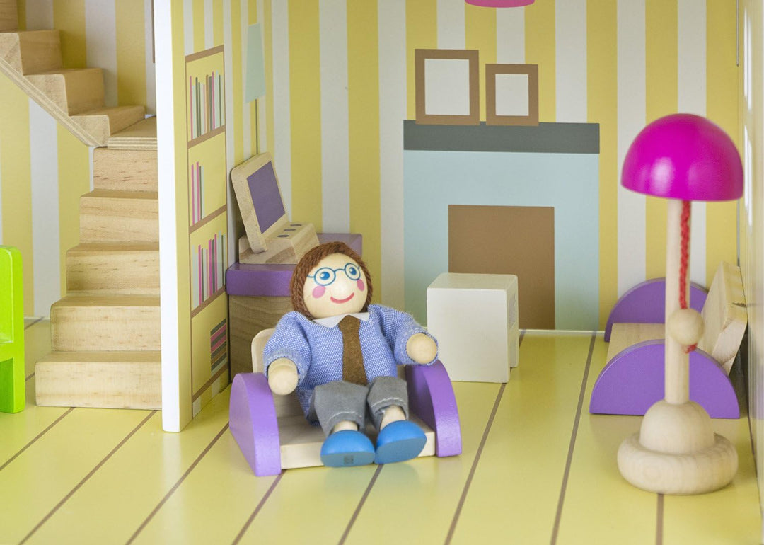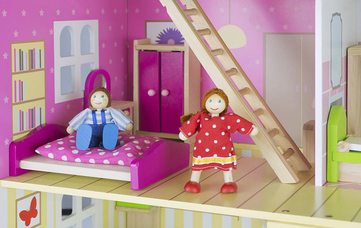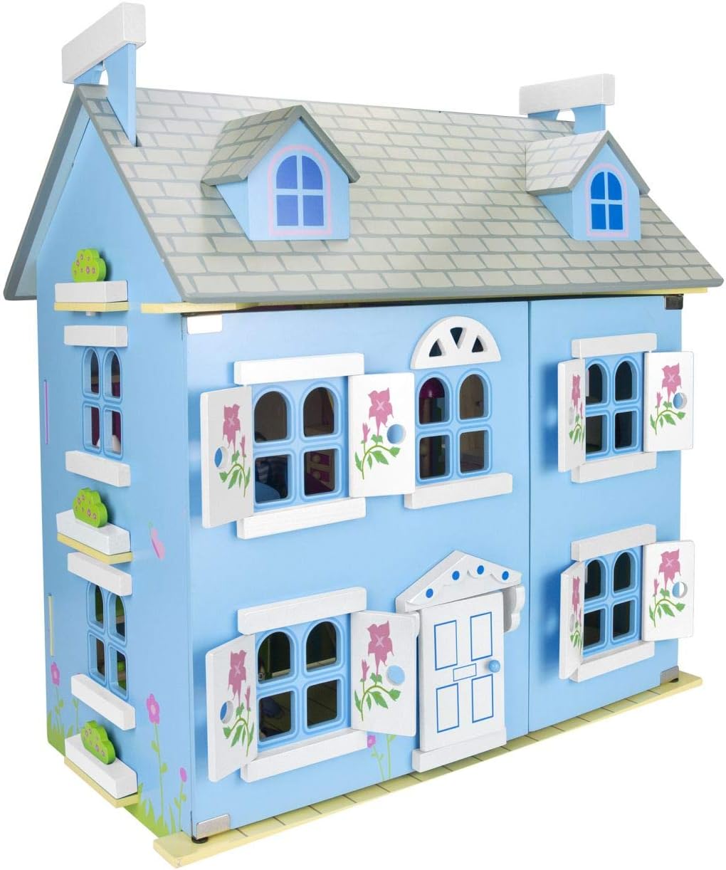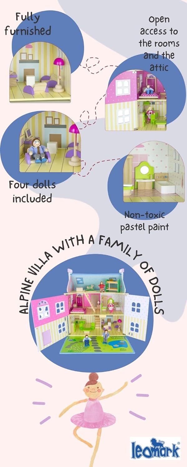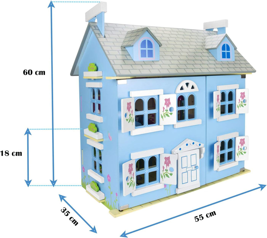 Leomark Alpine Villa Puppenhaus aus Holz mit Möbeln und Familie - Farbe Blue - Familienhaus mit möbe