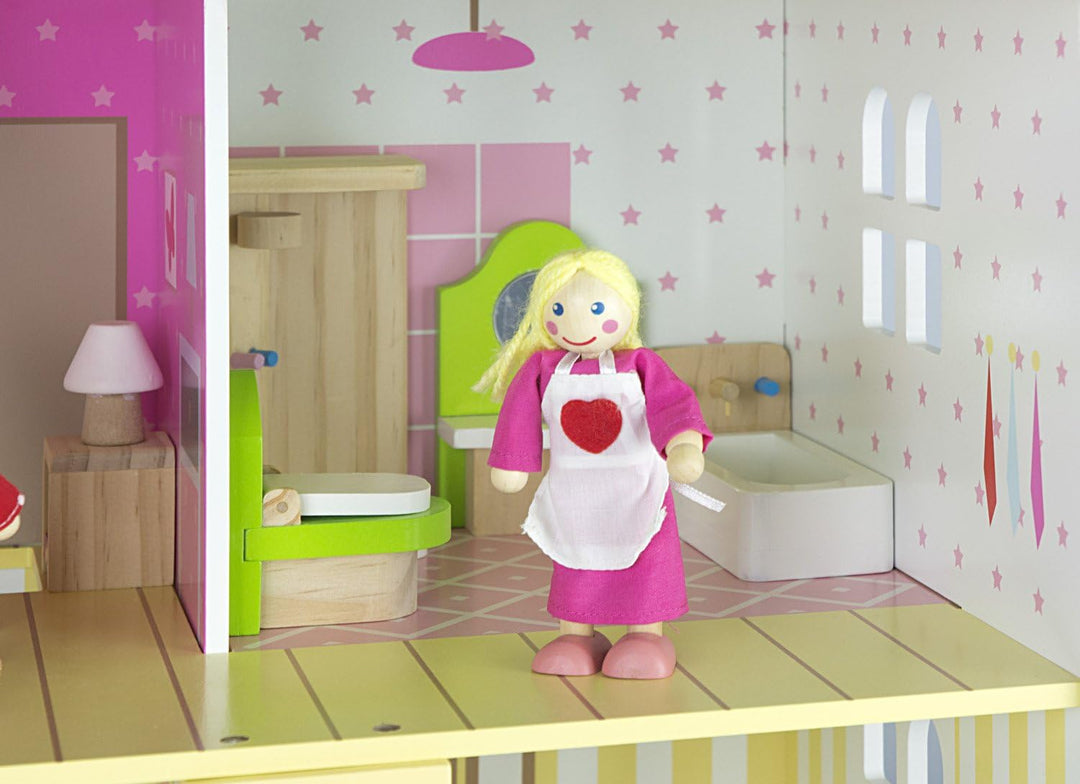 • đŸŒŒ [ZUBEHÖR] Das Set enthĂ€lt ca. 30 Accessoires, 4 Puppen (Mutter, Vater, 2 Kinder). Ein Puppenhaus mit 5 Zimmern, 2 Etagen und einer Terrasse.