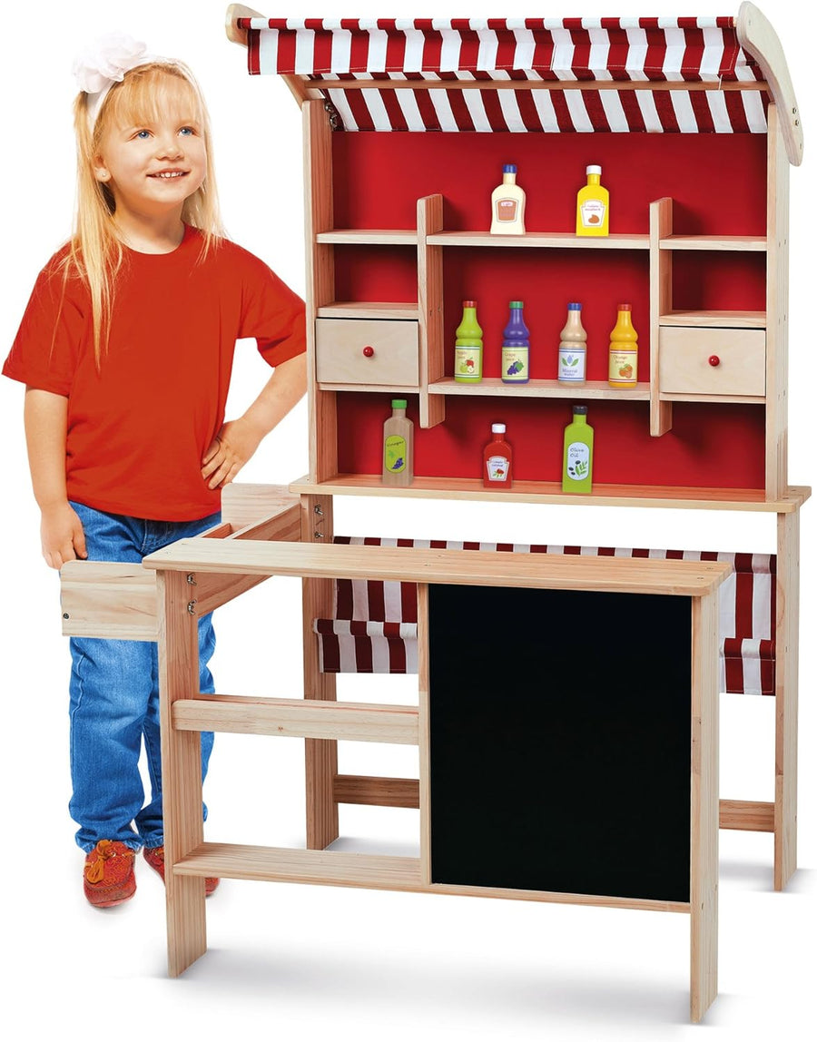 Leomark Kaufladen aus Holz - Supermarket - inklusive Kaufladenzubehör, Verkaufsstand mit Verkaufsreg