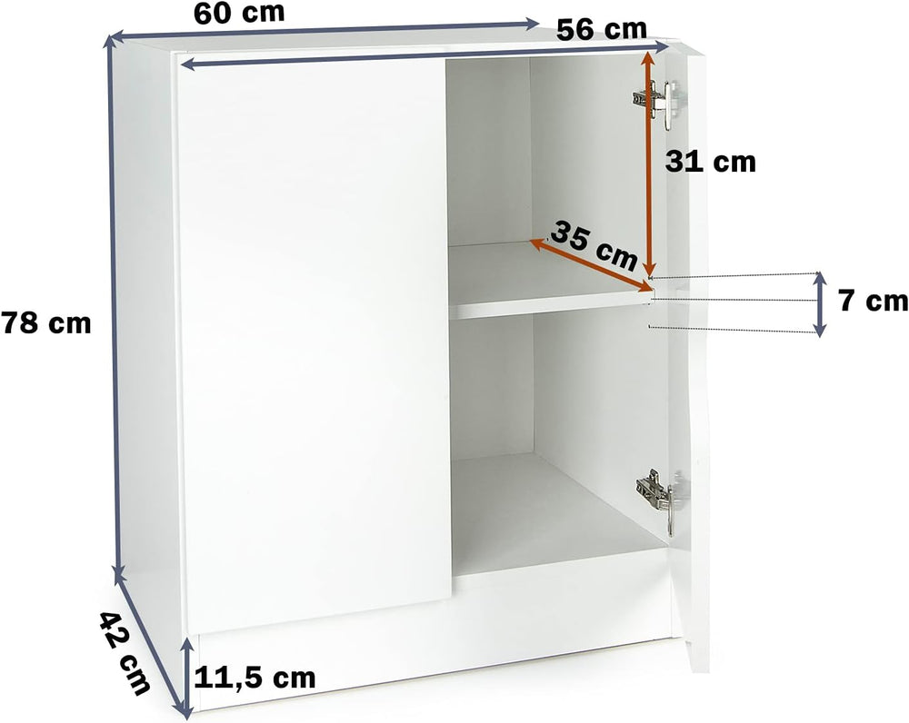 • ✔️ Die Möglichkeit der Höhenverstellung des Regals im Bereich von 7 cm (3 Varianten).