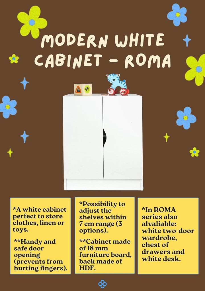 Leomark Moderner weiss Schrank - Roma - Kinderzimmermöbel, Kleiderschränk, Kommode, höhenverstellbar