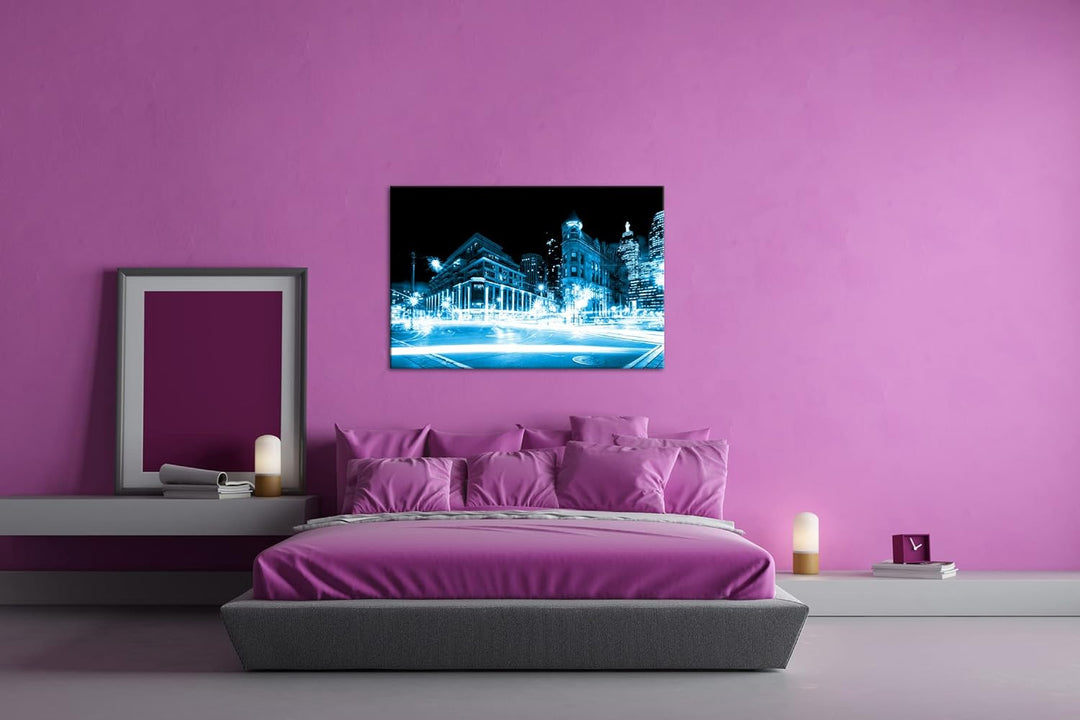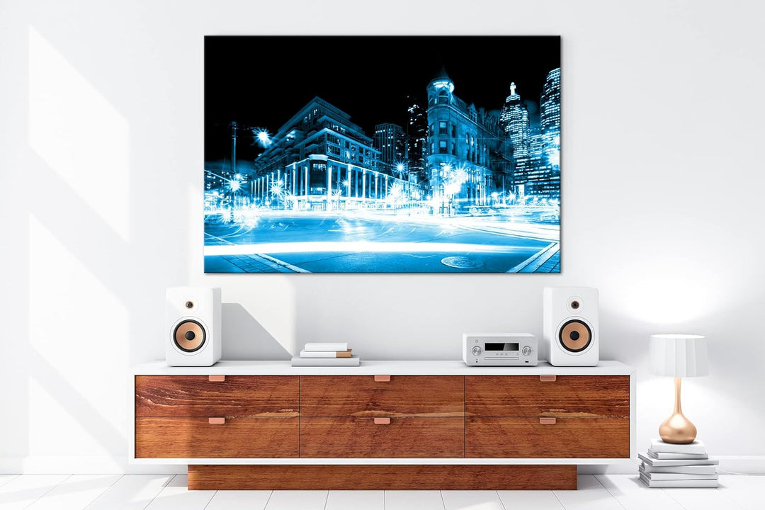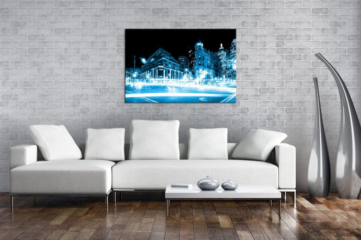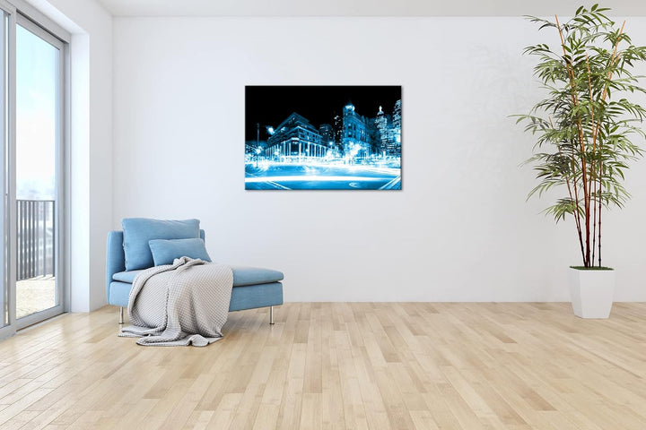 deyoli leuchtende Strassen von Toronto Format: 80x60 Effekt: Monocrome Blau als Leinwand, Motiv fert