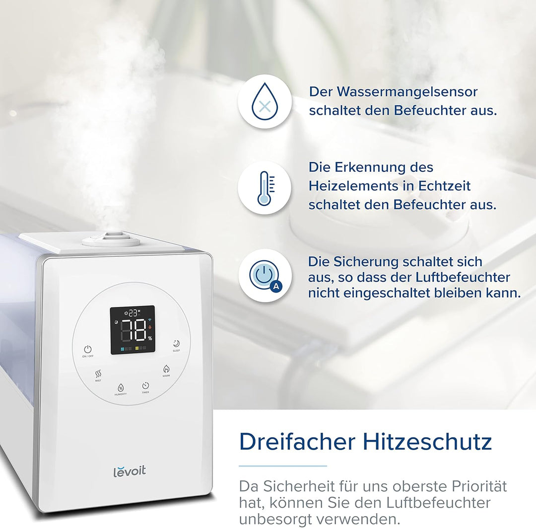 - 【VERBESSERT FÜR SIE】Die Marke LEVOIT strebt nach Exzellenz und verbessert die Produkte ständig.Als verbesserter Warm und Kalter Luftbefeuchter hat der LV600S eine herausragende Befeuchtungsleistung und kann Sie vom Herbst über den Winter bis zum Frühling und Sommer begleiten
