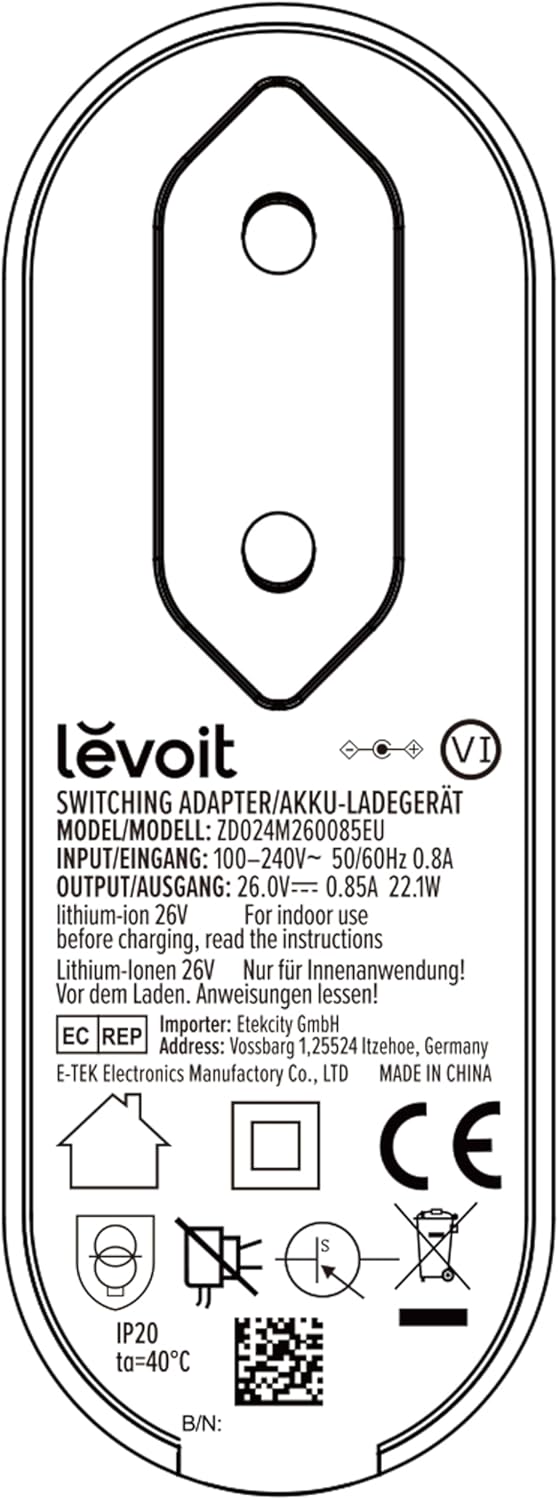 - Original Adapter für LEVOIT LVAC-200 Akkustaubsauger