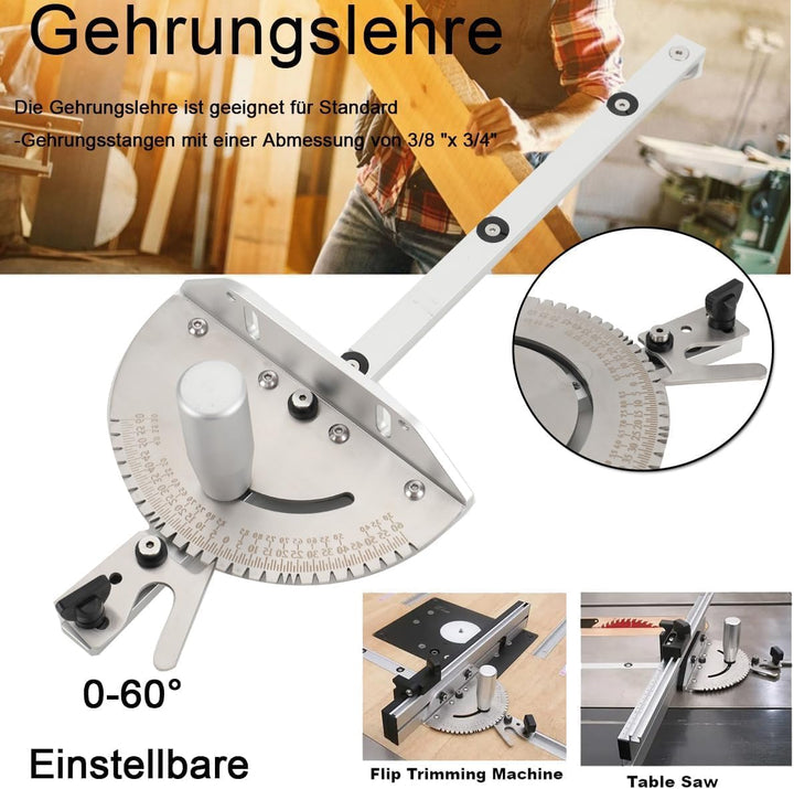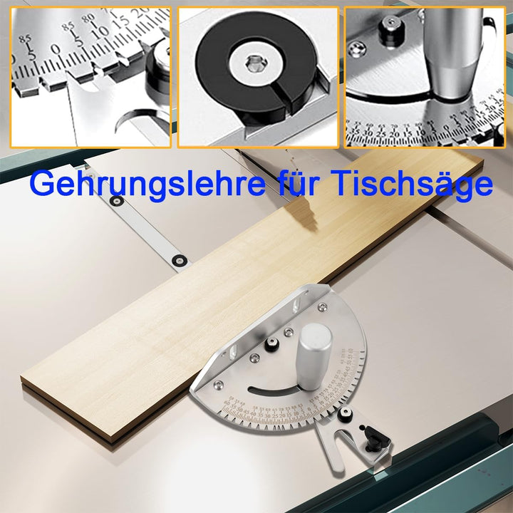 - Helfer für Holzarbeiter: Diese Gehrungslehre kann in den Gehrungsschlitz einer Tischsäge eingepasst werden. Dann läuft die Gehrungslehre parallel zum Sägeblatt und ermöglicht hochpräzise Winkel- und Querschnitte