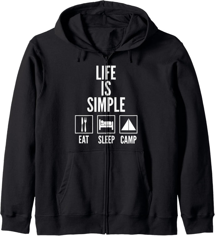 PRODUKTBESCHREIBUNGEN This camping-themed design features the text life is simple with a small eat, sleep, and camping graphic. Mehr