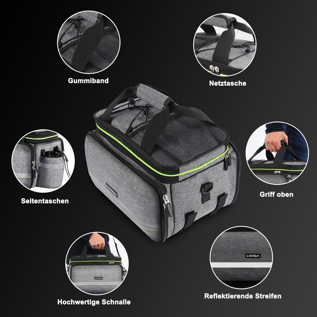- 【Fahrradtasche für Gepäckträger】Wenn Sie auf der Suche nach der vielseitigsten und am einfachsten zu tragenden Tasche sind, ist diese Gepäckträgertasche für die anspruchsvollsten Fahranforderungen konzipiert. Egal, ob Sie mit dem Fahrrad oder