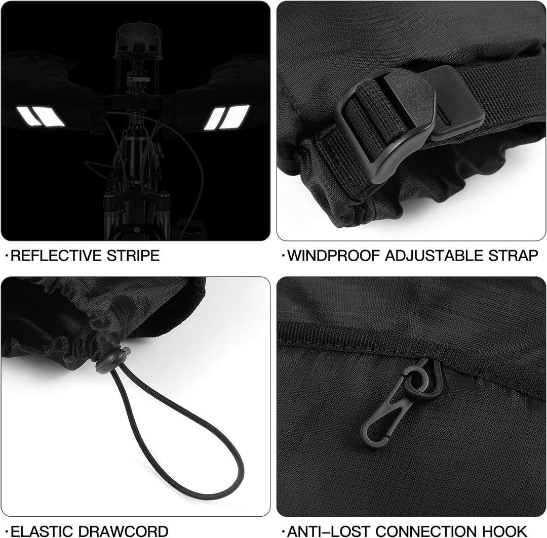 - ☀【EINFACH ANZUBRINGEN UND ENTFERNEN】Elastisches Band zur Befestigung am Lenker, um die Handschuhe an Ort und Stelle zu halten.Weite Öffnung mit verstellbarem elastischem Kordelzug sorgt für sicheren Sitz Ihrer Mantelärmel.